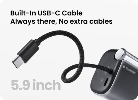 Built-In USB-C Cable – Grab and go. No extra cables to carry.