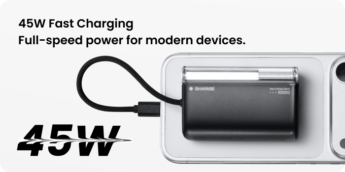 SHARGE Flow 3 Power Bank (45W,10K,Built-in Cable)