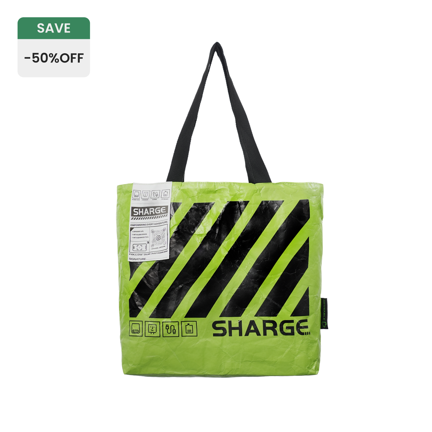 Made from premium DuPont™ Tyvek® material, this SHARGE tote bag is lightweight, durable, and eco-friendly, perfect for everyday use.
